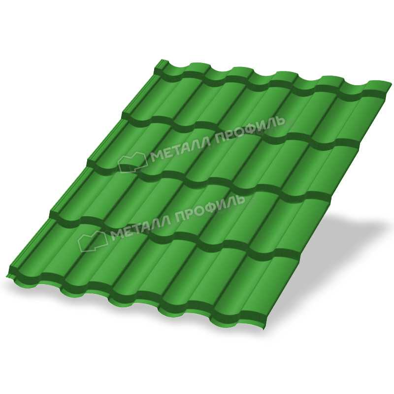 Металлочерепица с профилем Монтекристо-X от Металл-Профиль представляет собой надежный кровельный материал толщиной 0,5 мм с покрытием NormanMP в ярком желто-зеленом цвете RAL 6018. Этот продукт сочетает эстетику классической черепицы с прочностью металла, идеально подходя для современных крыш.