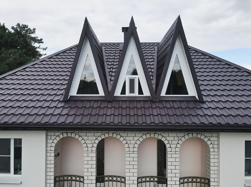 Уникальной особенностью является комбинация матового покрытия с симметричным профилем, которая создает эффект натуральной черепицы без лишнего веса. Толщина 0,5 мм балансирует между прочностью и гибкостью, позволяя формировать сложные формы крыш. Цвет RR 32 устойчив к выгоранию, что особенно важно в солнечных регионах. Материал не требует специального ухода — достаточно периодической очистки от листвы. Интеграция с системами водостока и снегодержателями делает его универсальным. Кроме того, металлочерепица обладает низким коэффициентом теплового расширения, минимизируя деформации при перепадах температур.
